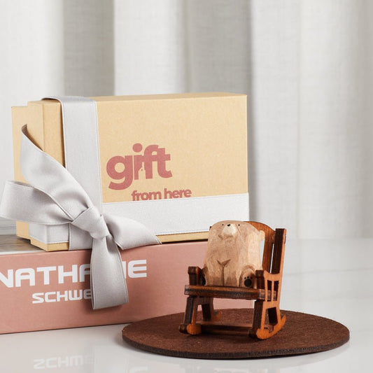 Wooden Bear in Rocking Chair Figurine