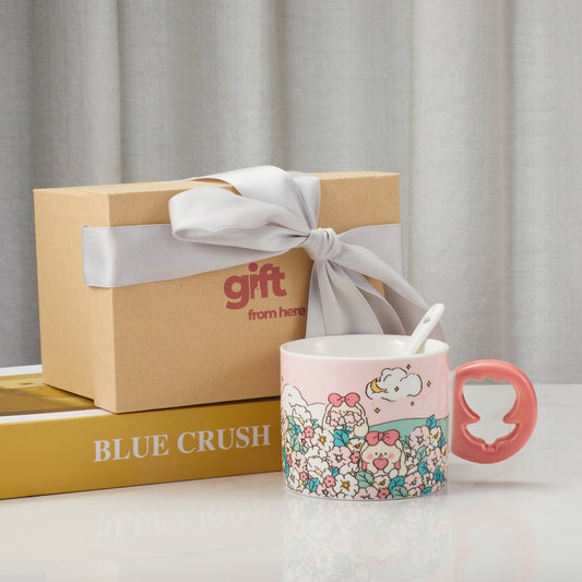 Cute Pink Floral Ceramic Mug with Floral-Shaped Handle