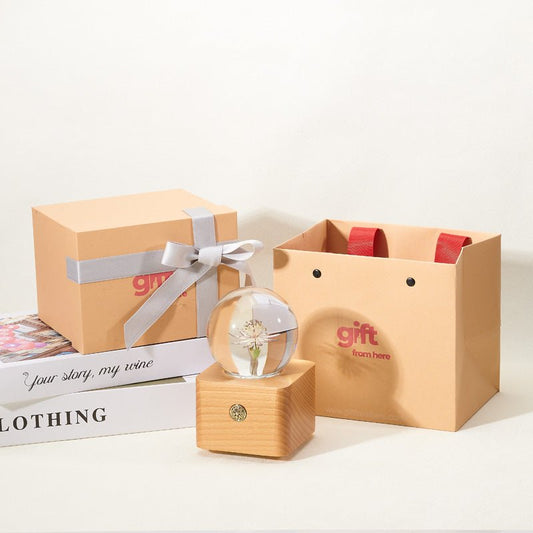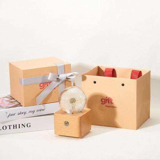 Dandelion Preserved Flower Crystal Ball Wooden Music Box