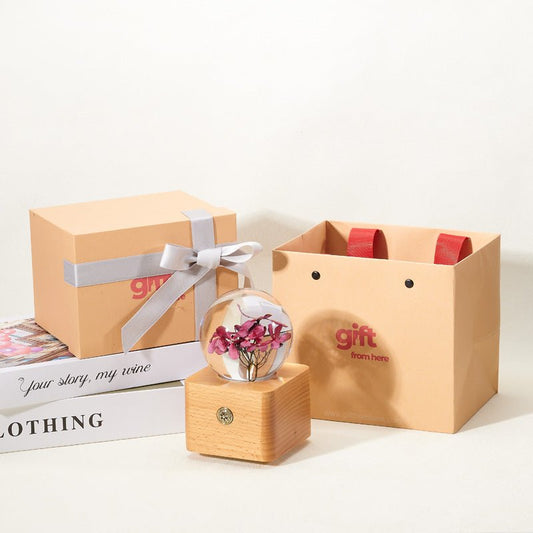 Coral Vine Preserved Flower Crystal Ball Wooden Music Box