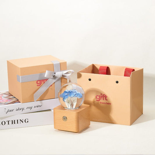Blue Hydrangea Preserved Flower Crystal Ball Wooden Music Box