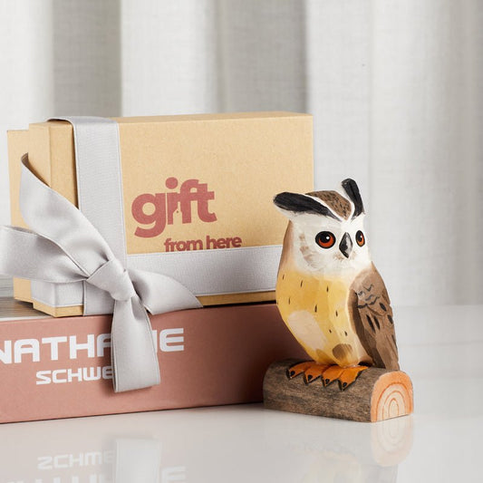 Hand-Carved Wooden Owl Figurine