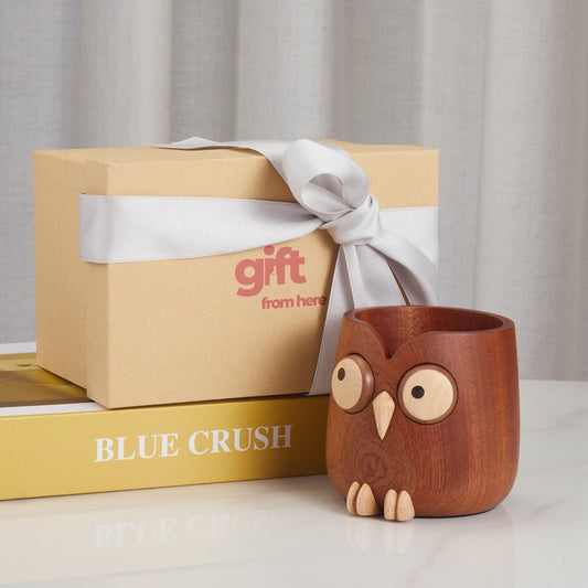 Handcrafted Wooden Owl Pen Holder