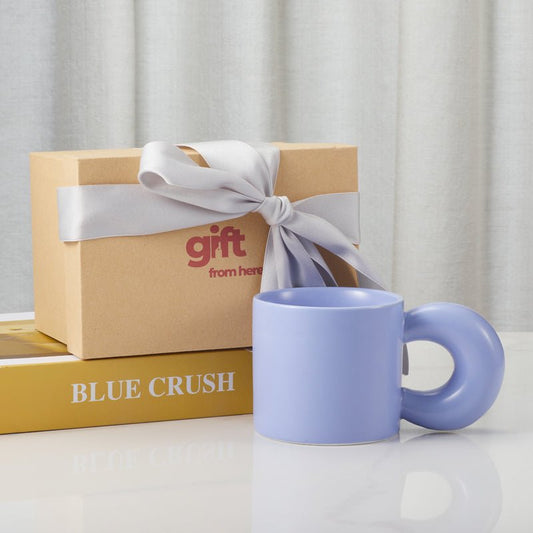 Light Blue Ceramic Coffee Mug with Unique Handle