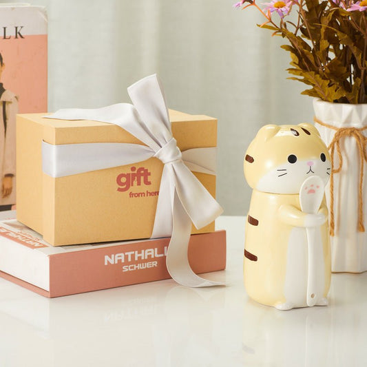Adorable Ceramic Cute Cat Mug with Spoon