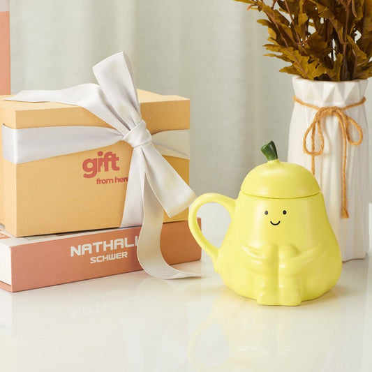 Adorable Pear Yellow Color Ceramic Coffee Mug with Lid
