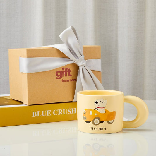 "Here Puppy" Mug with Puppy in The Car